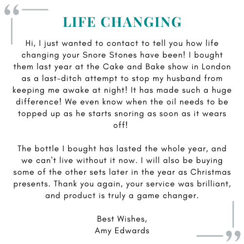 These natural volcanic Aromatherapy Snore Stones have been infused for days in an expert blend of 9 different essential oils that have been chosen for their ability to support easier breathing and more restful sleep for snorers and partners alike.